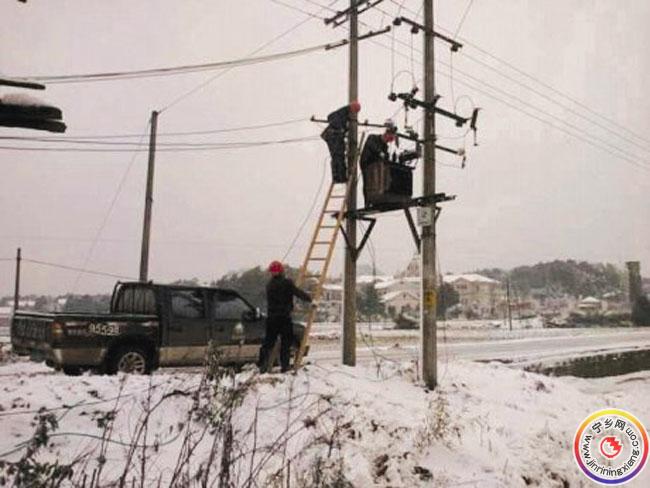 “杨梅塘变过载烧坏,梅鸣村停电”,1月22日晚上九点半,正是除夕夜,在双凫铺供电所值守的工作人员接到抢修电话后,立即赶往现场进行抢修。杨梅塘变压器位于离路边几十米远田地间,近千公斤的变压器只能靠人工抬运,双凫铺供电所的12名抢修人员冒着刺骨的寒风,顶着不断砸向身上、脸上的冰雪,迅速组织更换变压器。有的爬上台架上进行设备的安装,有的深一脚浅一脚穿梭在田间搬运器材,有的站在水田里打着应急灯为施工的队友进行照明,连续奋战了2个多小时,11点左右杨梅变终于恢复供电。越是高山坡陡变压器就越是难以运送,像杨梅塘边这样的台区还有很多,有的变压器位于山岭上,坡陡加上结冰,行走都很困难,但为了尽快抢修烧坏的变压器恢复供电,电路工作人员硬是迎难而上,胸前挂着手电筒,手脚并用的“爬”着上山。