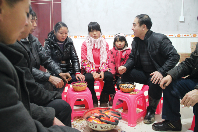 兔年除夕夜,李锡泉同唐高春家人围坐在炭火旁交流,向他们嘘寒问暖,为他们鼓劲打气。