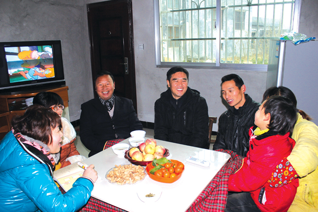 鞭炮响起,李国中笑迎我们的到来,他身后是政府和爱心人士援助6万元建起的120平方米的新房,其中黄雪钦援助了4万元。见到我们的到来,李国中的妻子赶紧招呼,又端茶又端水果,忙得不亦乐乎。“不是您献爱心,我这辈子根本没想到可以住上这么好这么宽敞的新房。太感谢了!”黄雪钦向李国中家送上最后一笔援建款2万元,并勉励他新年勤奋工作,让全家早日过上小康生活。