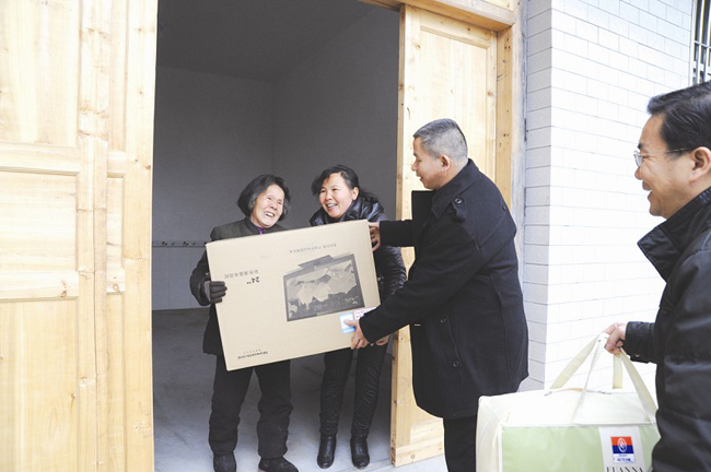 彭吉关等6户龙田镇特困户,是2011年全县“干群心连心、共建新家园”活动中法院直接援建的特困对象,节前他们都已搬进了温暖明亮的新居。1月5日,此前在建房过程中早已“串门”多次的马贤兴踏着山区初雪,为他们每户送来一台液晶平板电视机、两床棉被,祝他们过一个愉快、祥和、温暖的新年;1月16日是农历小年,县法院又将这六户特困家庭人员接到县城,和法院全体干警共享团圆宴,共同观看趣味横生的法院团拜会节目。