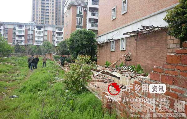 宁乡县富豪山庄由宁乡县城市建设投资开发有限公司开发,发生垮塌的围墙位于紫金路附近,靠近II期39栋,潇湘晨报记者看到,倒塌的围墙近2米高,旁边是荒草。