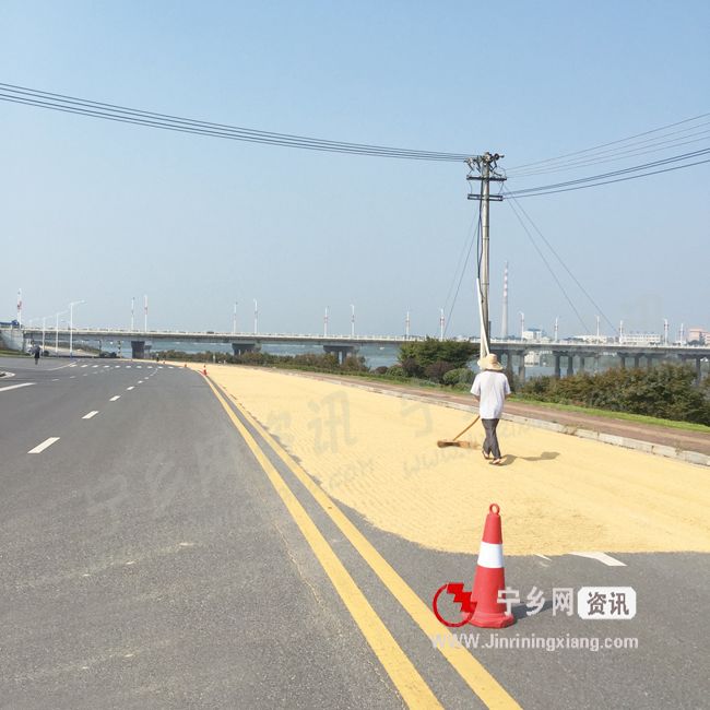 宁乡网—今日宁乡讯 9月16日,记者经过金洲大桥时发现,有农户占用机动车道晒稻谷,给路经该路段的驾驶员带来诸多不便。