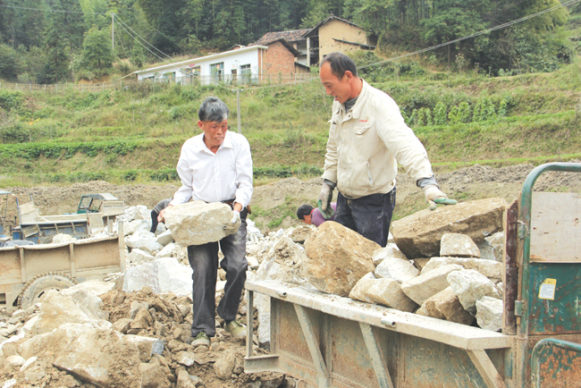 2015年10月10日,沩山乡沩源村皇田冲沩水源保护开发建设现场,66岁的高书仕如正常人一样忙碌着。他一心扑在沩水源头的保护开发上,已有近3年时间。在当地干群心头,他是一名新时代的“愚公”。