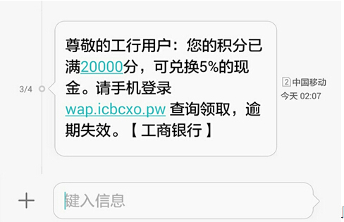 2016年3月4日凌晨,宁乡玉潭镇周某接到了1条冒充工行的短信进行诈骗。
