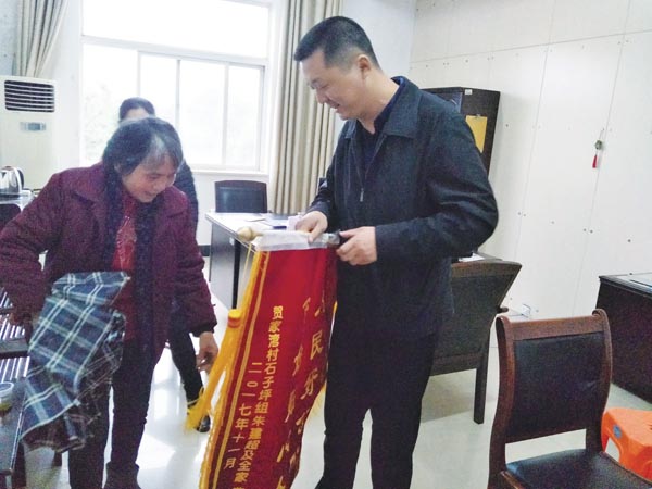 宁乡网—今日宁乡讯(记者 鲁应龙)“这要感谢你们这些好干部,我儿子幸亏遇见你们这些好心人!”11月17日,煤炭坝镇贺家湾村村民谢金连来到镇政府给该镇镇长贺伟送上“人民好公仆、百姓贴心人”的锦旗,对贺伟尽心尽力帮扶她家表达感激之情。