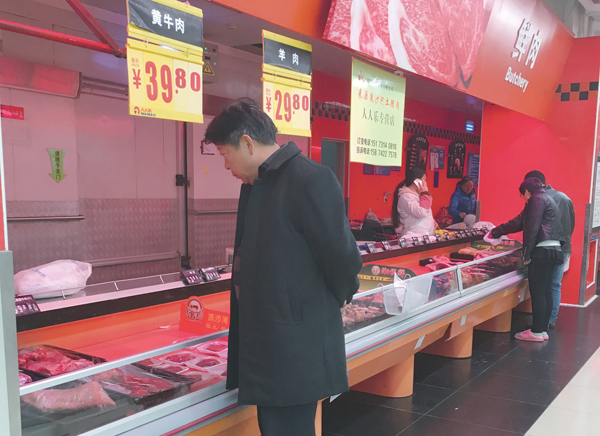 市民正在选购牛肉。本报记者 彭倚 摄