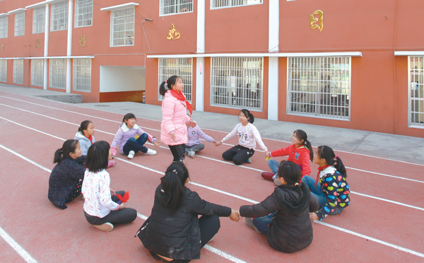 提质之后,沙坪完小有了更好的运动场地,图为该校教师张文辉正在组织学生玩游戏。本报记者 张奇涛 摄