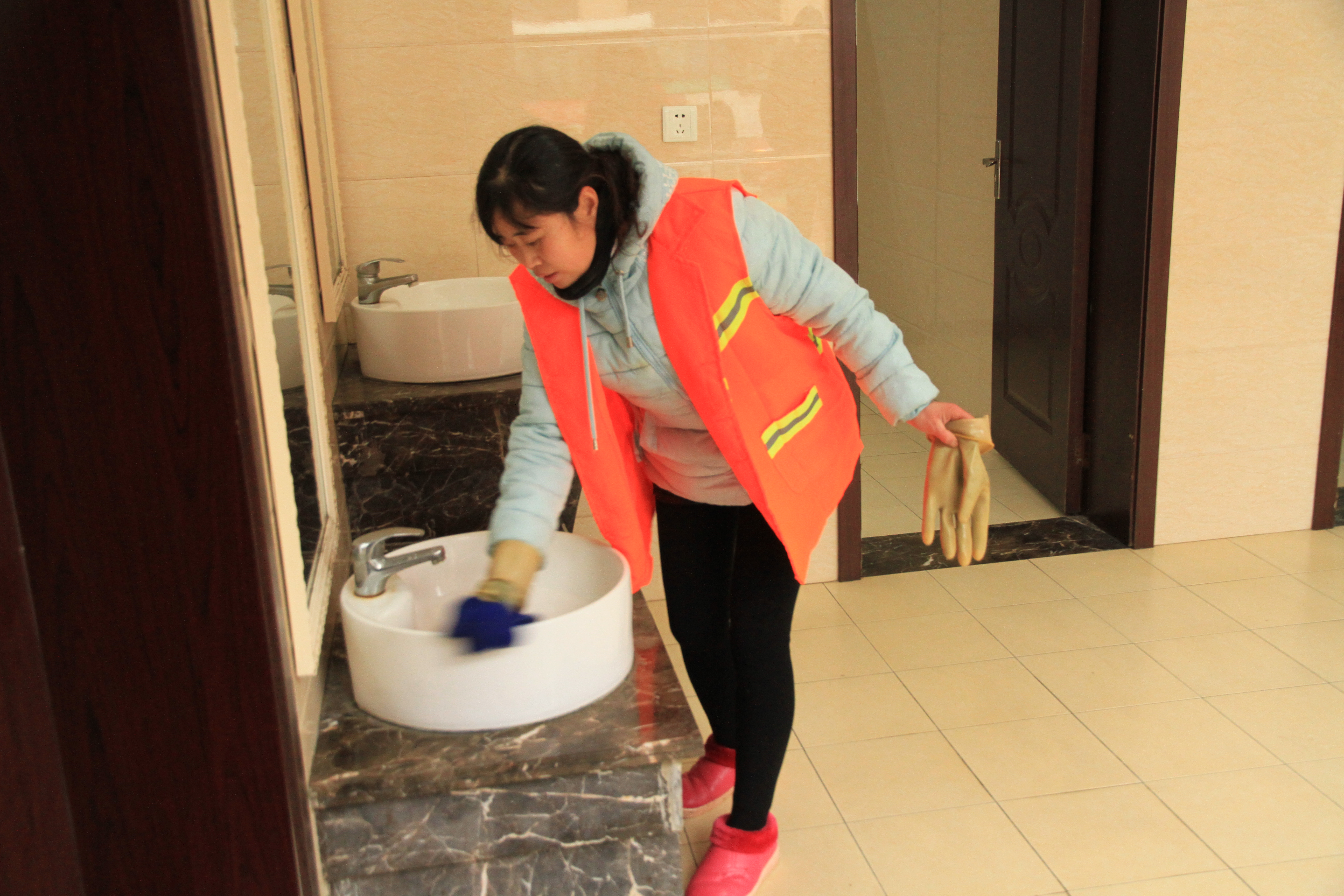 在人民北路新一中公厕同,站厕保洁员付金霞正在一丝不荀的对公厕的水笼头,洗手池、墙壁进行抹洗,公厕内,地板光洁如新,燃烧的蚊香散发出淡淡的香味,门窗干净整洁。“除了年三十的晚上在家吃了团圆饭,春节期间吃住都是在环卫公厕的休息间,24小时对公厕实行全天候保洁,给广大市民提供一下洁净的如厕环境。”