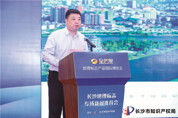 姜小鹏在金芒果地理标志产品国际博览会上推介宁乡经验。