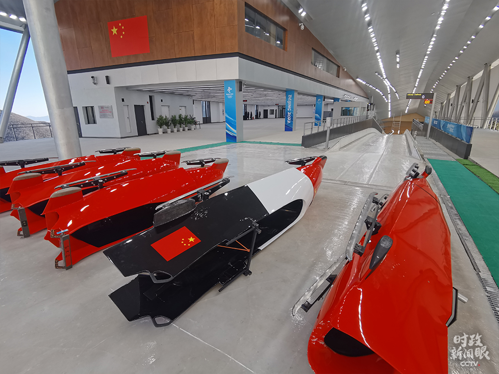 △陈列在国家雪车雪橇中心的雪橇(总台央视记者杨波拍摄)