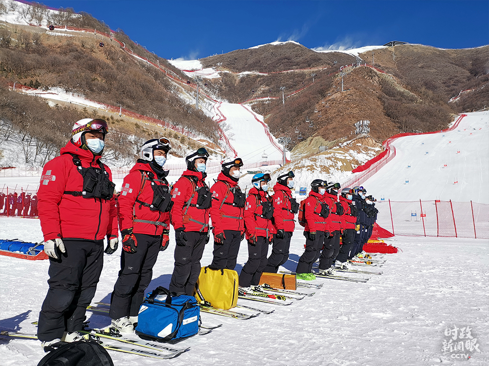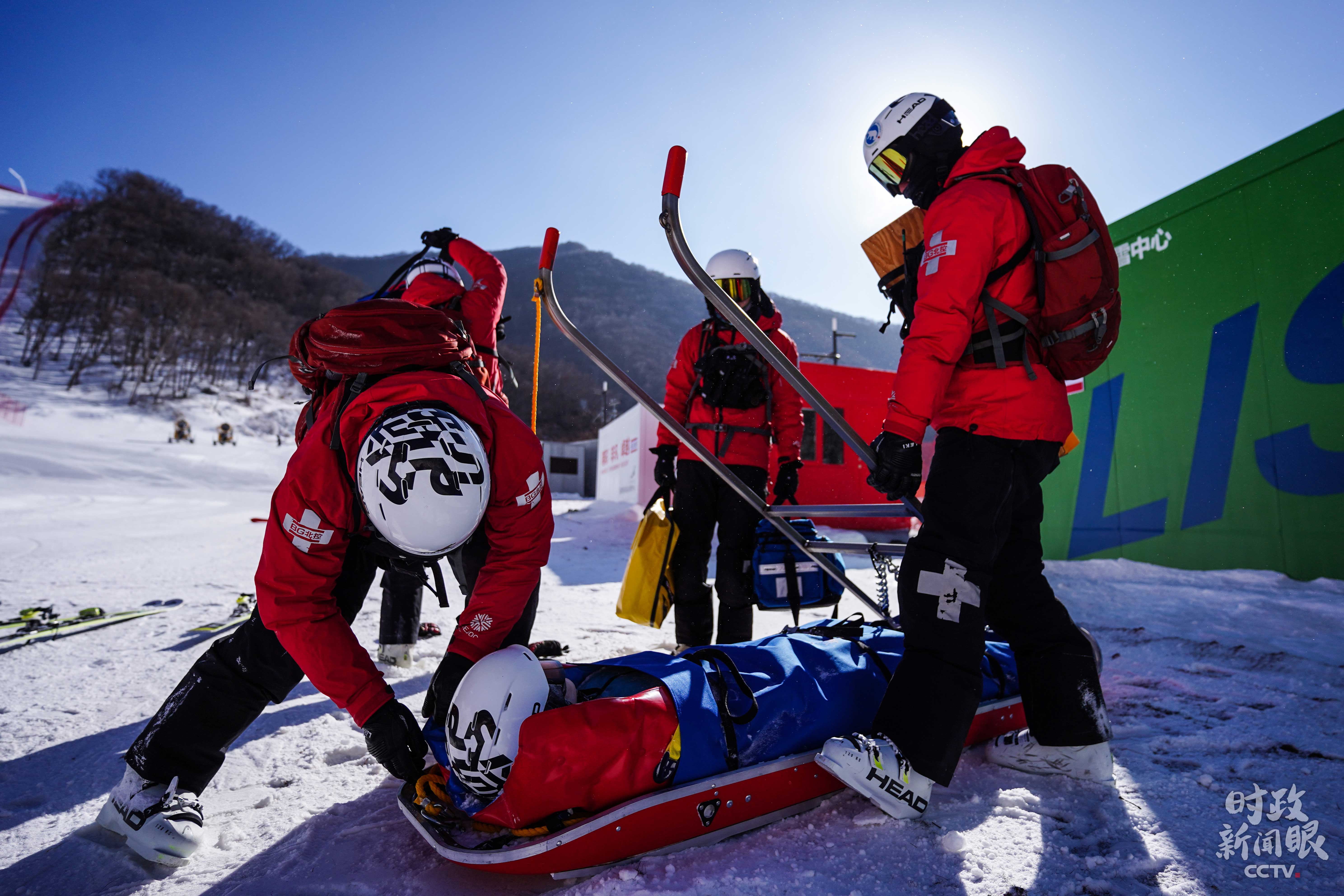 △国家高山滑雪中心救援队正在演练。(总台央视记者杨立峰、国广记者李晋拍摄)