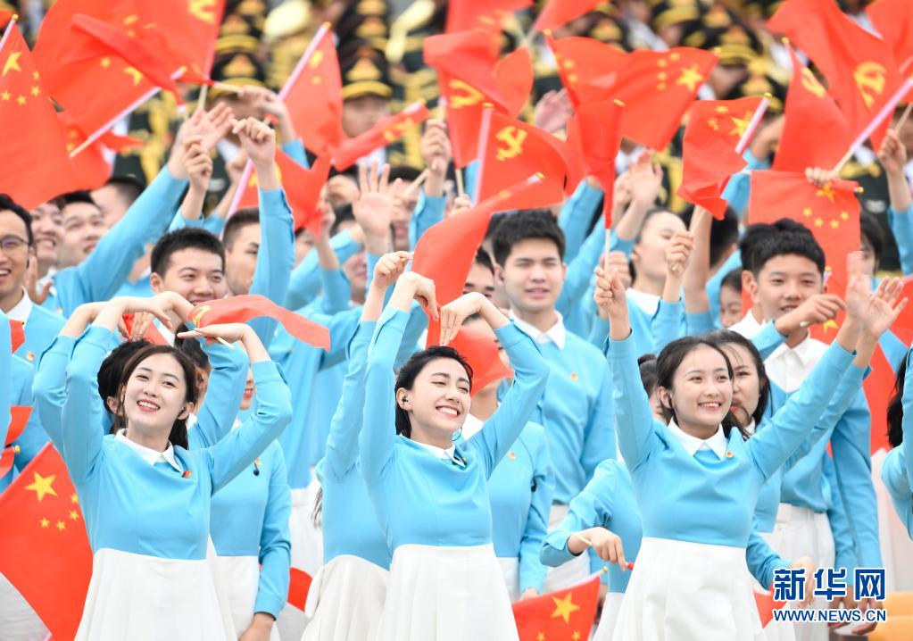由1068名共青团员和少先队员代表组成的献词方阵发出“请党放心,强国有我!”的铮铮誓言。